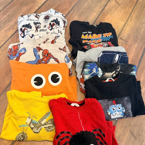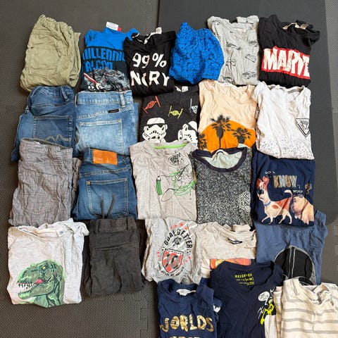 Mye klær igjen. 24 t-skjorter, noen bukser og gensere