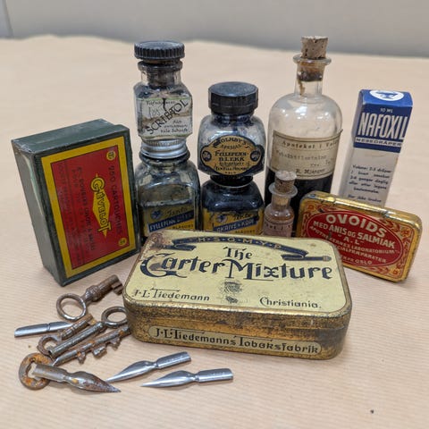 Reiseaskebeger og pipeverktøy. kr 250,-