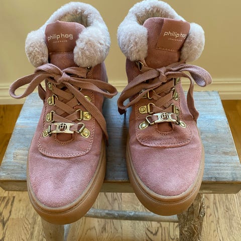 Nye sneakers, beige semsket, Philip Hog. Litt små til meg, derfor bare prøvd på.