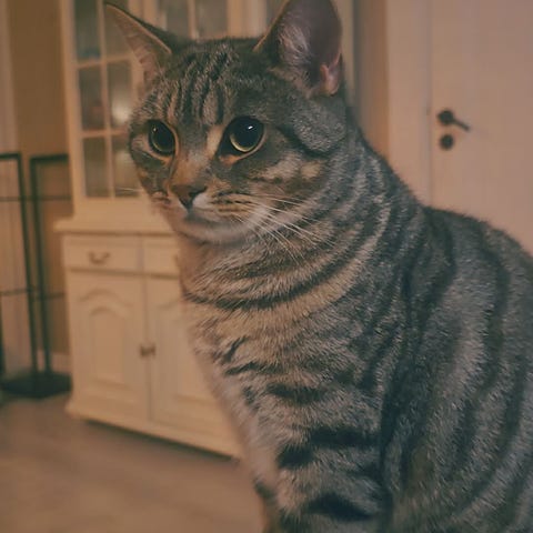 Verdens herligste hannkatt søker et trygt og varig hjem. Han er veldig kosete, sosial og glad i både voksne og barn. Han elsker oppmerksomhet og trives spesielt godt med å ligge på balkongen og følge med på det som skjer rundt seg.