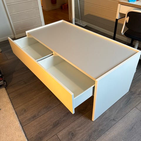 Pent brukt med noen merker i front på skuffen. Og to merker oppi den ene skuffen ( trolig tusj eller noe) ny pris 1700 og litt til..må hentes. Ved rask avgjørelse kan pris diskuteres. Møbelet er ikke demontert.