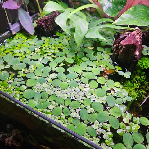 Frogbit og duckweed flyteplanter, og jegersnegler/assasin snail gis vekk