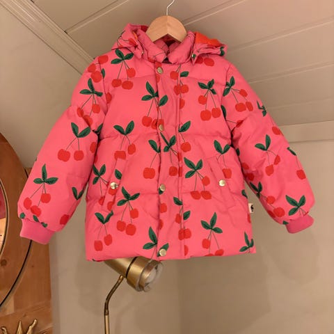 Nydelig MeMini-(By Kristine Vikse)jakke/vinter/høst/vår og sommer-kåpe i størrelse 104, men veldig god i størrelsen. Vil si den er som en ren 110. Og den kunne brukes til jenta var 116 i str.