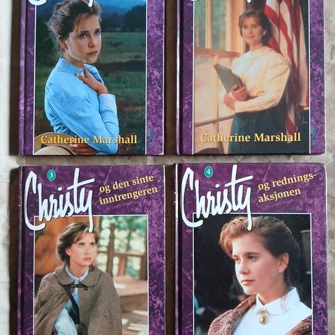 Catherine Marshall Christy bokserie, sett med 7 bøker på norsk. Bøkene har hard perm med illustrerte omslag. Serien følger hovedpersonen Christy i ulike livssituasjoner og fortellinger. Utgitt av Lunde forlag. Kan sendes mot porto.
