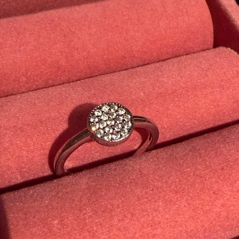 926 sølvring i str 54, infinitiv/infinity symbol besatt med glitrende Cubic Zirkonia stener.