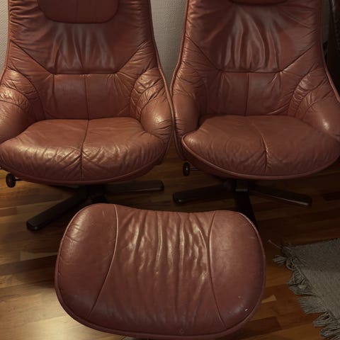 2 stk lenestoler og 2 stk skinnpuffer fra Bohus selges samlet