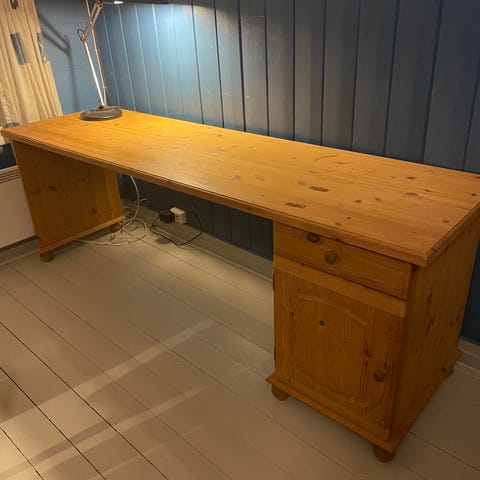 Skriveforsking i furu. Godt med oppbevaringsplass og i god stand