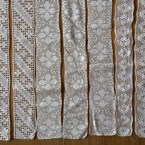 Flere ulike mønstre og bredder, egnet til søm, håndarbeid, pynt på klær, interiørprosjekter og andre hobbyprosjekter.