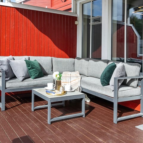 Selger denne sofaen og bordet, det er kun brukt 1 sommer. Putene har ligget tørt hele vinteren, pent brukt. Selges på jysk nå til 19.999 kr