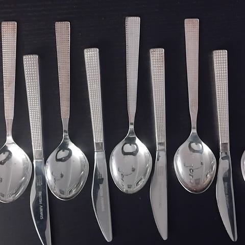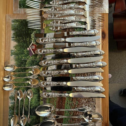 De tre tingene på eget bilde er ikke med på vekta,da det kun er sølv i håndtakene.