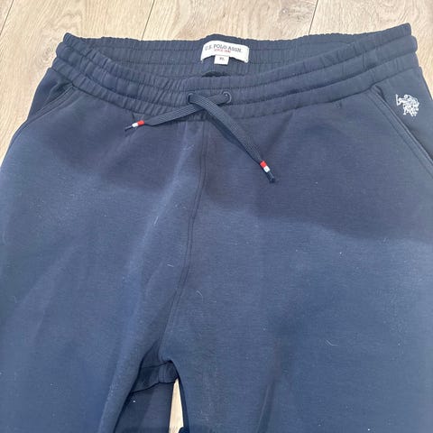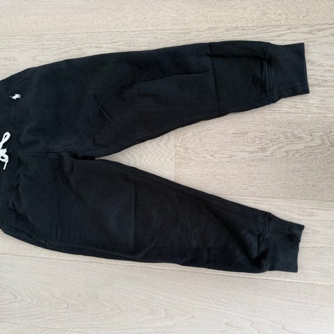Polo Ralph Lauren joggebukse for dame i størrelse M. Buksen er blå og laget i bomull. Den har strikk og snøring i livet for justerbar passform, samt ribbekanter nederst på bena. Mykt materiale som egner seg til hverdagsbruk og avslappede aktiviteter.