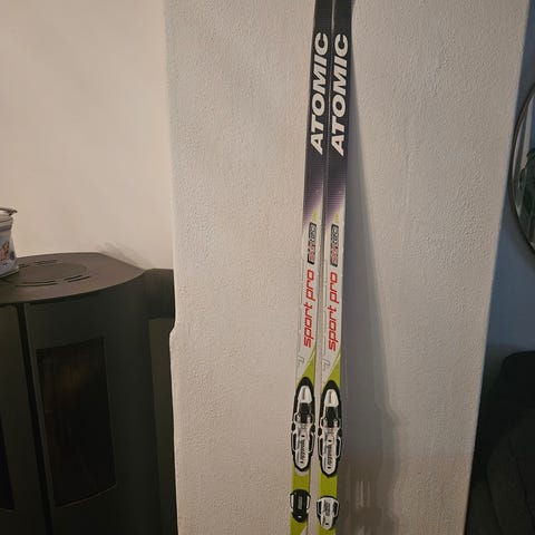 Atomic Easy Skate Skintec langrennski i lengde 195 cm. Skiene er merket med dimensjon 45-45-45 og er utstyrt med integrert fellesystem (Skintec).