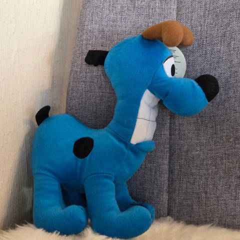 Kun stått som pynt, men har dessverre en flekk, som også strekker seg under bamsen, se bilde. Er muligens kaffeflekk.