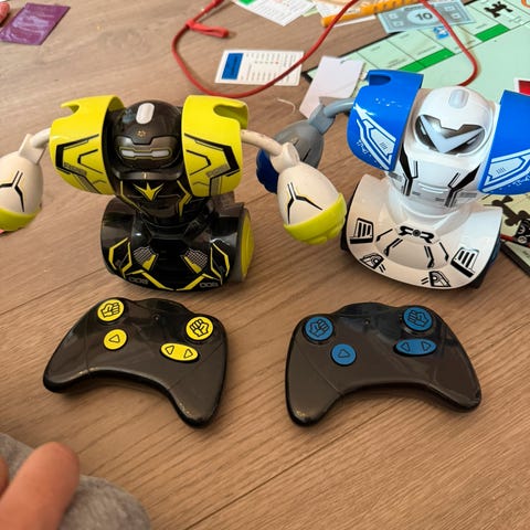Gir bort to stk 'Kickabot'. Morsomme roboter hvor to stk kan spille fotball mot hverandre. Har dessverre ikke ballen som fulgte med, men tror ikke det er noe problem å bruke en annen. Hentes I Moss.