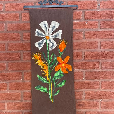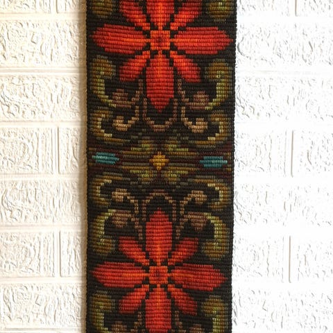 Søkeord: broderi, brodert, klokkestreng, åkle, klostersøm, teppe, billedvev, veggteppe, ull, redesign, retro, rustikk, gobelin, tekstil, smijernsbeslag, tradisjon, håndlaget, hjemmelaget, husflid, tekstilkunst