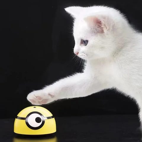 Jeg har festet figuren på et lavt bord slik at katten min må strekke seg litt for å komme til leken.