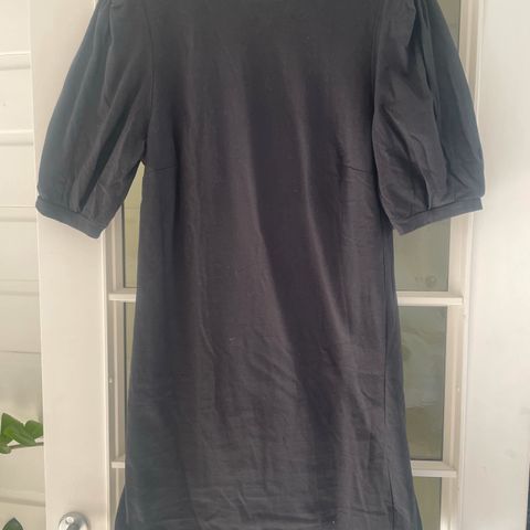 ella&il hverdagskjole for dame i størrelse S. Kjolen er svart og laget av bomull. Modellen har lange ermer med lett puff og rund hals. Passer som enkel hverdagskjole og kan brukes alene eller kombineres med strømpebukse eller leggings.
