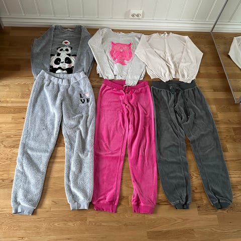 Pent brukte klær i str 140. Treningstights, bukse og 2 gensere. Selges samlet.