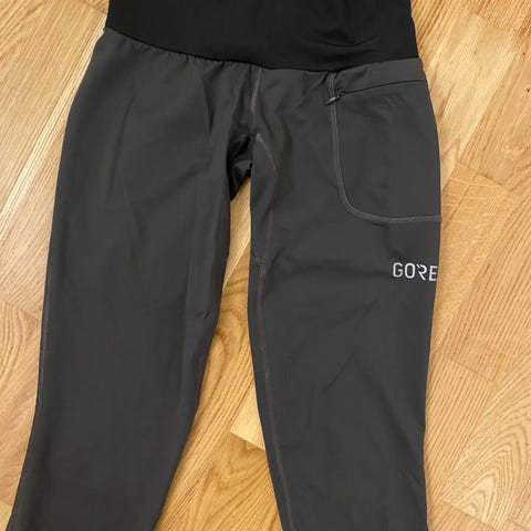 On Weather Pants løpebukse for dame i størrelse s. Buksen er i hovedsak svart med mørkegrå partier. Den har elastisk linning med snøring for justering av passform. Glidelås nederst på bena gjør det enklere å ta buksen av og på over sko. Egnet til løping og annen trening utendørs eller innendørs. Vindstoff foran-stretch. Str S. Jeg har brukt den kun en gang. Ny pris 1900.
