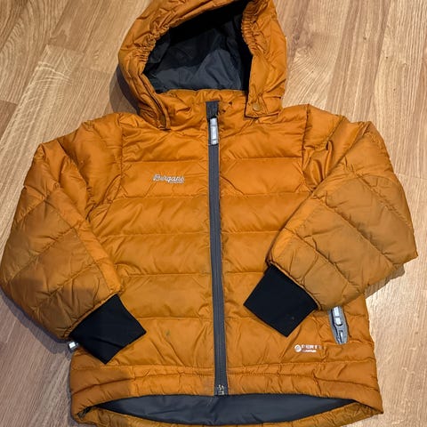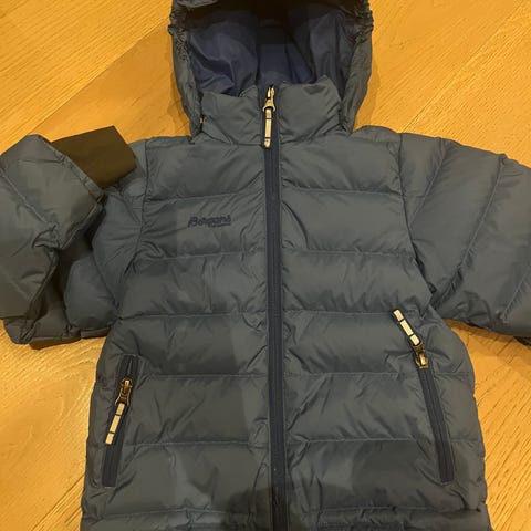 Bergans dunjakke for barn i størrelse 98, unisex. Jakken er blå og fylt med dun. Den har hette, glidelås i front og glidelåslommer i siden. Mansjetter ved ermene gir tettere avslutning. Innvendig merking viser at dunen er RDS-sertifisert (Responsible Down Standard). Egner seg som ytterjakke i kjøligere vær for barn i aktuell størrelse. Røyk og dyrefritt hjem.