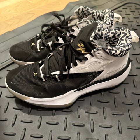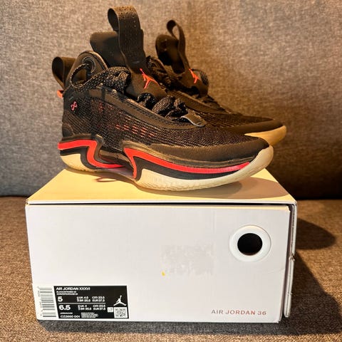 Pent og veldig lite brukte Jordan Zion Williamson -Jumpman basketball sko i størrelse 37.5 selges for kr 680. Ny pris var kr 1799.