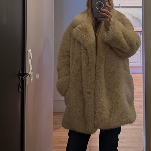 Eksklusiv og tidløs kåpe i ekte blårevspels, kjøpt vintage. Kåpen er fra Finland og holder høy kvalitet.