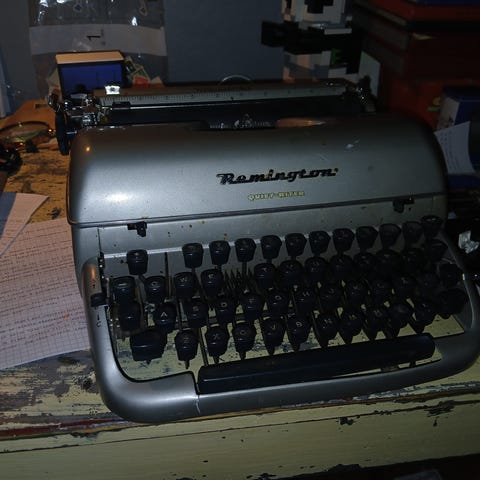 Denne skrivemaskinen har i mange år både vært på loftet og i boden etter at min pappa gikk over til å bruke en elektrisk.