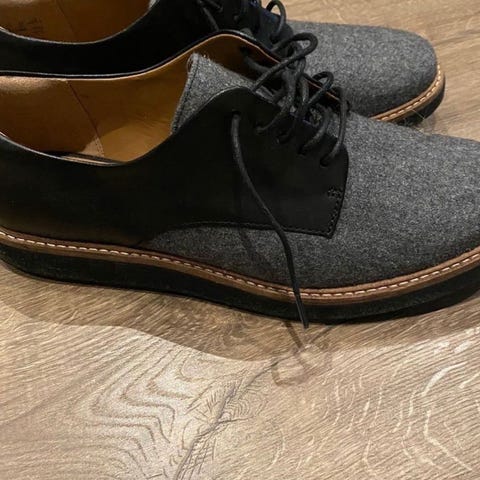 Clarks pensko i varm lillatone i skinn i størrelse 39,5 for dame. Skoene har snøring foran og dekorative frynser over vristen. Overdelen er i glatt skinn med enkelte partier i semsket skinn. Yttersålen er kraftig med mønster for bedre Egner seg som hverdagssko eller til penere antrekk. Ligner mokkasiner
