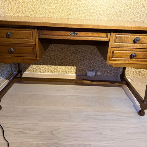 Solid skrivebord i mørk eik.