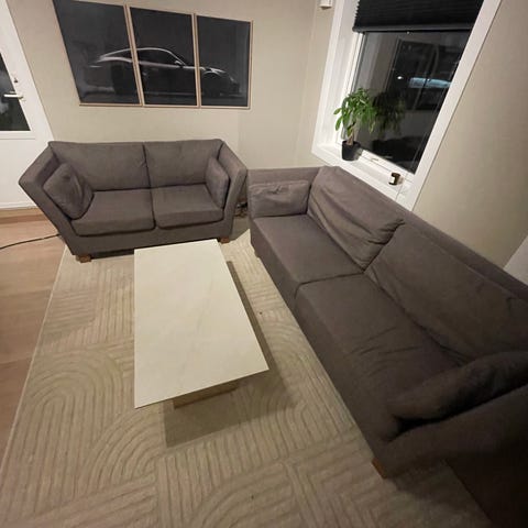Pent brukt sofa gruppe selges for 1500. Den er fast å sitte i. Kan hentes på hytta i Siljan, eller vi kan hente den hjem til Skien.