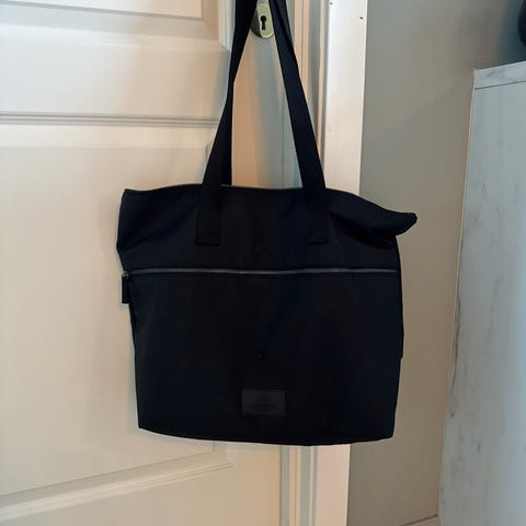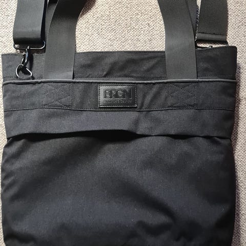 Vann/vindtett romslig skulderveske fra BRGN. Stor innvendig lomme, lukkes med glidelås, hemper og magnetknapper og en utvendig lomme. Bredde: 32 cm, høyde 37 cm. Farge svart. Kjøpt januar i år så lite brukt. Hentes Hop / Nesttun.
