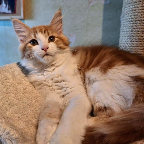 Han er renslig, leken og supersøt. Mild i væremåte. Spiser både hills-og royal caninfor for kattunger.
