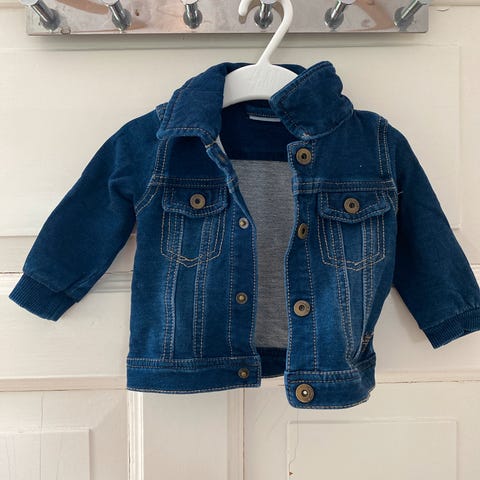 Selger en fin og praktisk jeansjakke med mykt fór inni i størrelse 110.