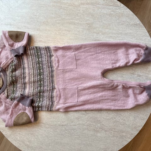 Helt ubrukt sett vi fikk til jul, men fikk dessverre aldri brukt. Så det er helt nytt og ingen anmerkninger. Det er blanding av ull og akryl, perfek til lag to under dressen.