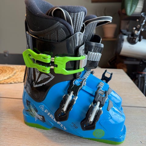 Atomic barneskistøvler i størrelse 19.0/19.5 (sålelengde 237 mm) selges Støvlene er i hovedsak svarte med hvite skaft og gule såler. Modellen har to spenner foran for justering og god passform,. Egnet som alpinstøvler for barn som bruker denne størrelsen i skistøvler.