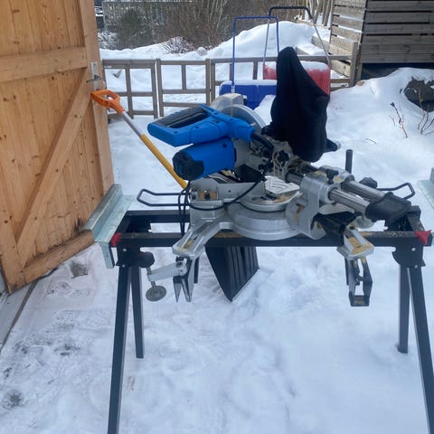 Kapp- og gjærsag, bordsag, høvel og 2 stikksager!