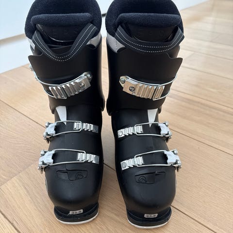 Roxa R/Fit alpinstøvler i svart med oransje og sølvfargede detaljer. Støvlene har fire justerbare spenner og powerstrap øverst for bedre tilpasning rundt leggen. Sålen har struktur for bedre feste ved gange. Passer til vanlig alpinbruk i skianlegg. Egner seg for brukere som ønsker en støvel med god støtte og justeringsmuligheter.