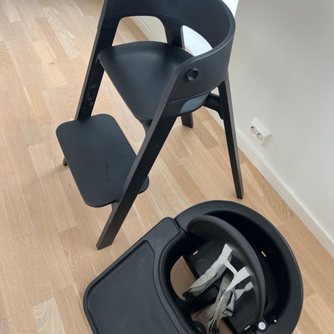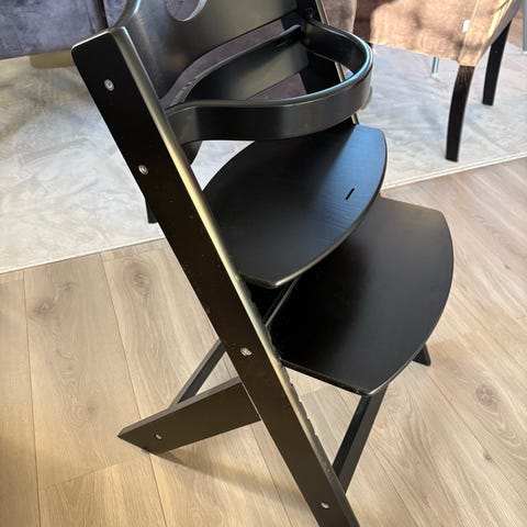Svart tripp trapp stol fra Stokke med alt tilbehør: