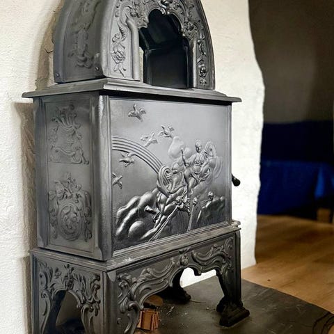 Klassisk Ulefos vedovn i solid støpejern. Eldre modell med tidløst design og god varmelagring.