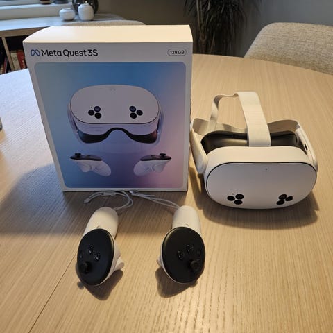 Kommer i original emballasje. I tillegg til selve headsettet m/kontrollere så medfølger også en Ghost of Tabor Raidr gunstock (verdi ca 1 000,-), Elite strap med 10 000 mAh batteri (verdi ca 400,-) og en trådløs ladeplate (verdi ca 200,-).