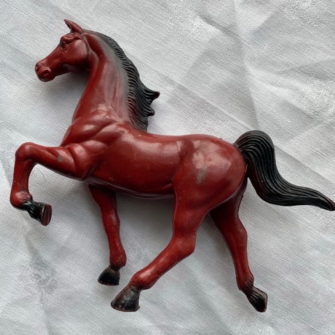 Sølvfigur av en hest i bevegelse laget av den anerkjente italienske sølvsmeden Cerreti, støpt i 800 sølv ved bruk av tapt voks-metoden.