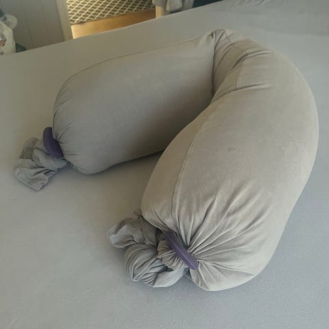 bbhugme gravidpute i rosa farge. Puten er formbar og kan brukes som støtte under graviditet, for eksempel rundt mage, rygg eller mellom knærne. Leveres med transportbag som gjør det enkelt å oppbevare og ta med puten. Egner seg også som støttepute ved amming eller som ekstra kroppsstøtte i seng eller sofa.