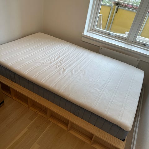 En pent lite brukt Stockholm rammeseng fra Bohus i fargen grå. Kjøpte sengen februar 2024. Det har hvert madrass beskytter på sengen hele tiden så overmadrassen er helt rent og trekket på denne er nylig vasket. Ene beinet på sengen er litt bøyd etter jeg vippet den opp, men sengen er helt stabil. Sengen er 120cmx200cm så er en perfekt seng for studenter, ungdommer, barn eller en enkelt person. Sengen kommer med bein. Kjøpte sengen for 5800kr i februar. Selger sengen grunnet flytting så må hentes SENEST 14 MARS i Skogveien.