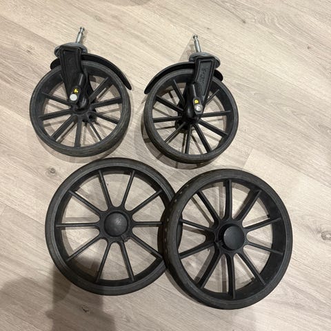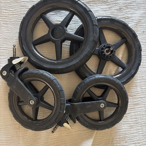 Hjul til bugaboo fox selges samlet. Hele, pene og fungerer som de skal.