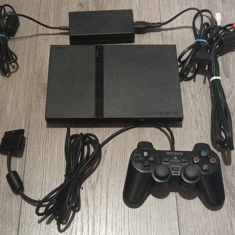 Selger en pent brukt ps2 slim. Med 3 spill og tilbehør.