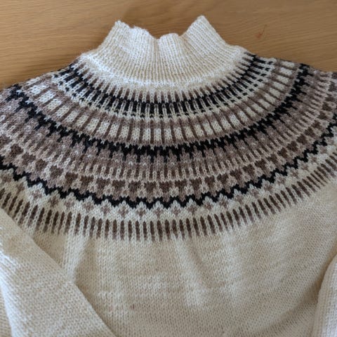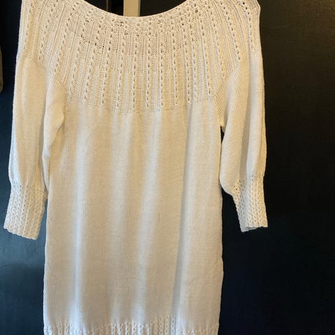 Denne er myk og god! Strikket i tynn tråd! Jeg syntes den er for vid i halsen!