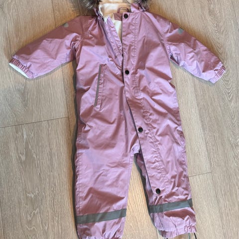 Dressen er rosa med kaninmønster og har avtagbar hette med fuskepelskant. Mykt, fleecefôret innside gir ekstra varme og komfort. Brukt som reserve dress, er derfor som ny🌸