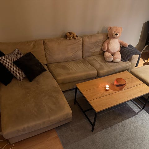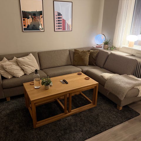Kjøpt for bare 4 mnd siden. Ingen flekker, nyrenset. Har en liten lukt fra eddik men er ingen flekk fra det. Sofaen kan bygges på med deler fra bohus. Helt nydelig grønn farge! Må hentes i Ålesund