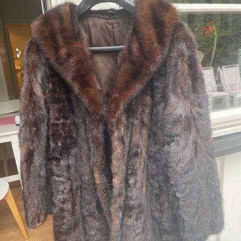 Horgen Pels kåpe for dame i størrelse L. Kåpen er svart og laget i pelsmateriale, med myk og strukturert overflate. Modellen har lengde ned mot hofter/lår og er utstyrt med sidelommer. Innsiden har glatt fôr for økt komfort. Passer som ytterplagg i kjøligere vær.