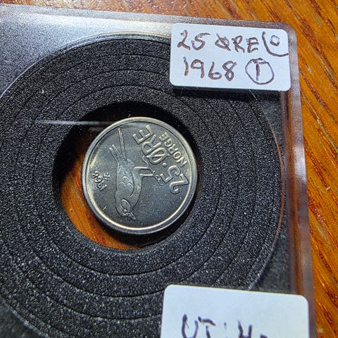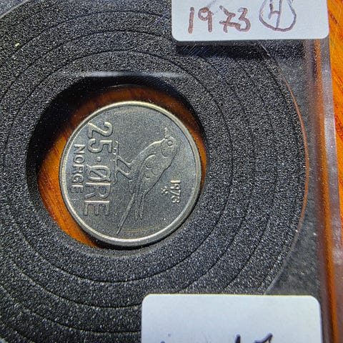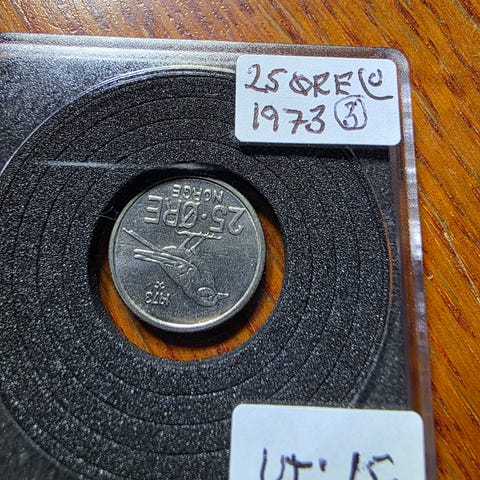 25 øre 1973 . Kv.0. Nr.1. Meget pen